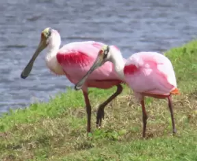 Owls, eagles, pelicans, turtles, giant tortoises, an alligator, in cages on a pretty piece of land with a pond and beautiful trees.