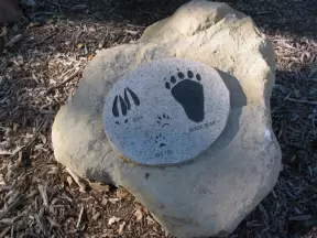 Across the street from the lighthouse, a paved nature walk with animal prints in the concrete and lovely lookout area at the end.