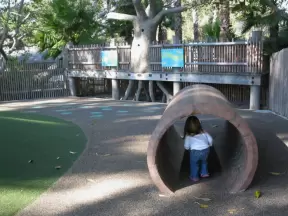 Amazing wooden playground with splash pad and gizmos galore, plus carousel and free science museum, all in a tropical setting.