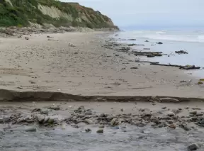 A popular beach with families and dog owners. Come for a long walk under beautiful cliffs.