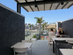 Sail Bay boardwalk and cafes, Pacific Beach