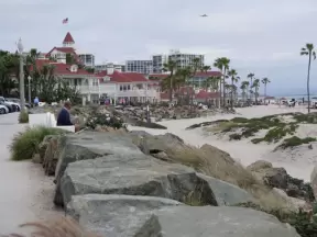 Long, narrow beach with a seawall backed by fancy hotels, a happening feel, and an oceanfront cafe.