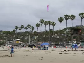 Beach with boardwalk, playground, magical mansion, and kayak rentals to kayak to sea caves, plus cafes nearby.