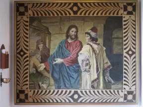 Beautiful modern basilica with gift shop, water lilies, stained glass, rose window, organ and exceptional choir.