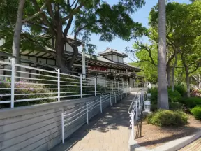 A happening spot with a sunken amphitheater by the water where kids can run in a splash pad and fountains are lit up at night. BurgerFi, Subculture Coffee, and a few restaurants.