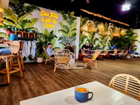 Cute cafes along the main road, in a strip mall and also in a public market.