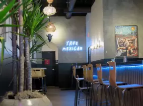 A pedestrian-only area on State Street with sidewalk cafes, good shopping, and colorful Spanish architecture.
