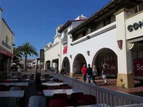 A pedestrian-only area on State Street with sidewalk cafes, good shopping, and colorful Spanish architecture.