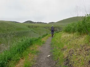 Pretty hike through wide open spaces, past rolling hills, and along a creek.