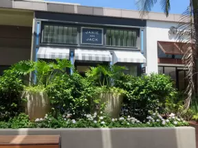 Gorgeous outdoor mall near UC San Diego, with lots of public spaces, cafes, and even a huge outdoor climby for kids.