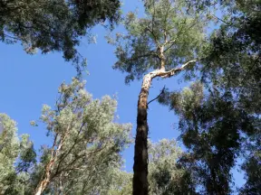 Shady walk among eucalyptus trees. Peaceful! Plus a cute playground tucked in a corner at the end.