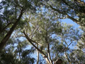 Shady walk among eucalyptus trees. Peaceful! Plus a cute playground tucked in a corner at the end.