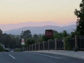 Walking paths, plus pretty park with picnic spot on hill under trees, popular pickleball courts, playground, mountain views, field for dogs, tennis courts, and basketball court.