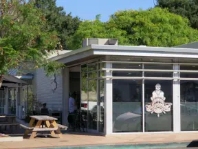 Coffee shop and cafes, plus a dedicated bike path that runs for 1.1 km from Dinosaur Caves Park to the elementary school.