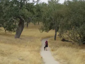 Narrow, loose-dirt path through oak habitat. Less than a mile. Also called James Way Park Trail.