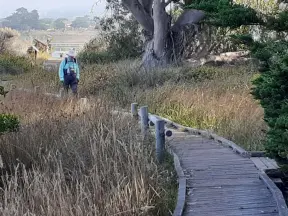 Wonderful wooden boardwalk over the dunes, with gorgeous views of the sea! Plus eucalyptus forest. You can walk 1.7 miles in total!