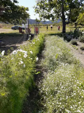 Lovely stroll past many different types of trees blossoming with seeds and flowers.