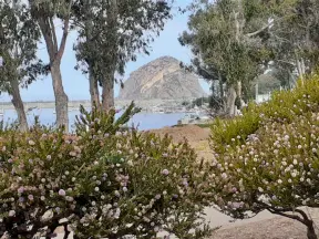 A boardwalk over stunted California Live Oaks with wonderful views of Morro Rock and the bay below.