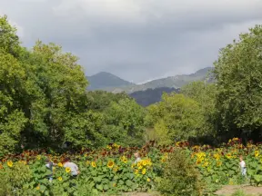 Beautiful spot where you can pick dahlias, cosmos, sunflowers, and play games.