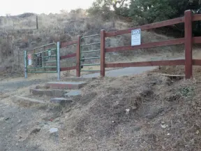 Views of sprawl, between two dry, barren hills. Steps to the top of each hill. Windy. Extremely foggy in the morning.