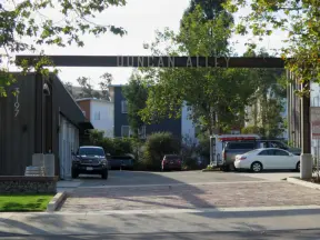 Lovely path beside a eucalyptus forest, on both sides of the creek, with workout stations, in a residential neighborhood. You can walk two miles total. Also called San Luis Ranch.