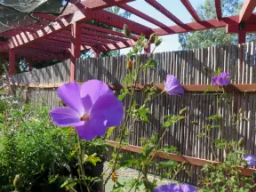 Wonderful wide open spaces with mountains of all shapes and sizes! First mile is shady. Four mile out and back, or five mile lollipop loop hike. Optional detours: architecture creations, or mountaintop swing.