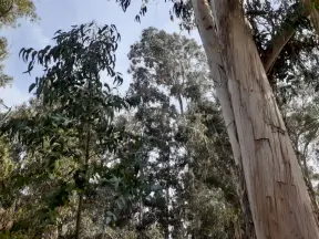 Shady walk among eucalyptus trees. Peaceful! Plus a cute playground tucked in a corner at the end.