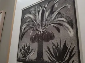 Beautiful palace in square full of trees, with strange and wonderful paintings and illustrations by M. C. Escher.