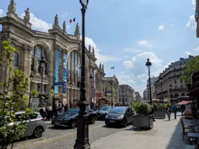 An ancient, pretty street with upscale shops in attractive storefronts. It leads south to the Seine River.
