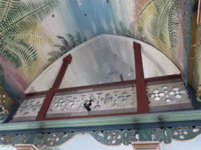 19th century white, wooden chapel perched above the sea, with entire interior painted in rich colors with scenes. Garden with sweet statues. Gorgeous lush drive.