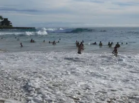 Beautiful beach, sometimes sandy sometimes rocky, with dangerous shorebreak enjoyed by teens and other daredevils.