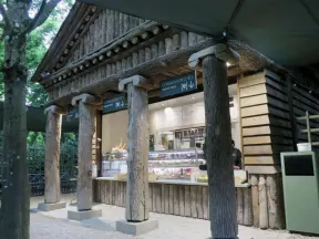 Open-air popular tea house made of logs. Sit in the sweet breeze high up over the gardens. Not just tea!