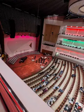 Gorgeous concert hall, free symphony rehearsal for older kids, and instrument petting zoo for little kids!