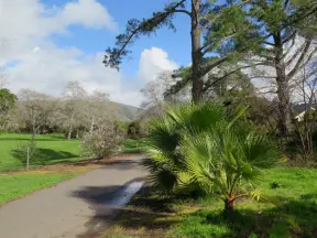 Walking paths, plus pretty park with picnic spot on hill under trees, popular pickleball courts, playground, mountain views, field for dogs, tennis courts, and basketball court.