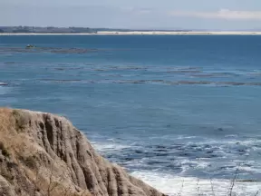Beach that is like a dream! Crystal clear river leading to the ocean and huge white rocks.