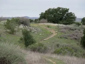 Shady 1.5 mile loop trail that winds gradually up a hill, with good views to the next hill, and awesome spooky oak forest with lichen, Spanish moss (actually lace lichen), and yellow grasses.