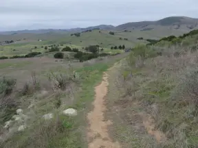 Eucalyptus and cactus forest, then amazing views over the high school toward the morros! After, a difficult, steep, rocky climb with gorgeous views of mountains and distant sea. Also called Bowden Ranch Hike.