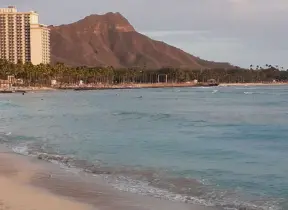 Calm beach that's great for kids and for early morning laps. Views of Waikiki skyline from the water.