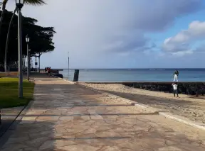 A rock wall protects this area of Waikiki Beach from waves, making it a swimming pool right there at the beach! Also called Kuhio Beach or Kuhio Ponds. Near Waikiki Wall.