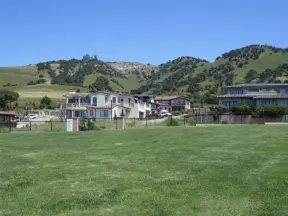 Scenic location with views of Avila Beach, on a lawn and river beach where kids can run and play.