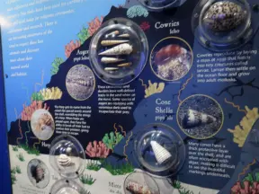 Two beautiful modern buildings full of attractive exhibits including some live animals.