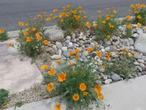 A peaceful 3-mile walk through oaky forest, past lush landscaping and a park with a historic adobe house, and among a neighborhood with gardens filled with flowers.