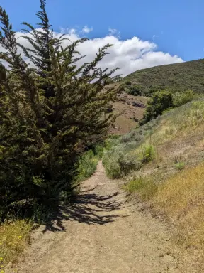 Strenuous 5.5 mile loop hike with views of the back country, and then views of SLO town at the top! Plus, a waterfall in winter or spring after rains.