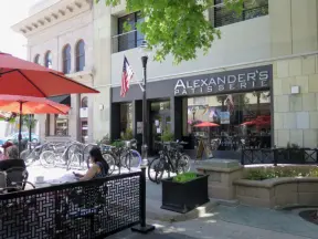 A charming strip of cafes and beautiful square in downtown Redwood City.
