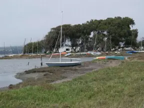 Blissful views of estuary and sailboats, eucalyptus trees, cypress trees, the bay and a little rocky point. Also called Windy Cove Hike.