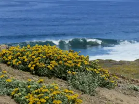 Walkway on the cliffs, in front of the resorts, that's bliss at sunset and in springtime when there are flowers galore. Take stairs down to a sheltered cove with tide pools.