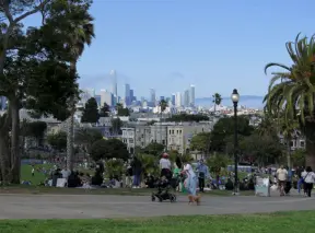 Pretty hilltop park with views of San Francisco's skyline, and the famous Painted Ladies.
