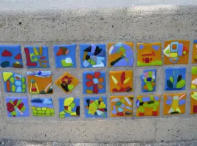 Special area of Balboa Park with adobe buildings, mesquite trees, and brightly colored tiles on the ground. Heart sculpture, and SD Gem Museum. Plus, the wonderful carousel!