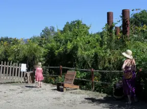 Garden in a sunny, sheltered spot, with cottage with turret under redwood trees, Buddhist gazebo, goats, and flowers galore! Seasonal pumpkins and Christmas market!