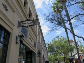 A pedestrian-only area on State Street with sidewalk cafes, good shopping, and colorful Spanish architecture.